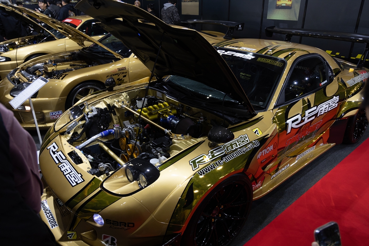 トップシークレットブースで、もうひとつ注目を集めていたのが、ロータリーエンジンの神様こと、RE雨宮とのコラボレーションマシン。「THE SEC“RE”T 7」と名付けられたマシンの心臓部は、3ローターNAで最高出力320馬力を発生するそうです。