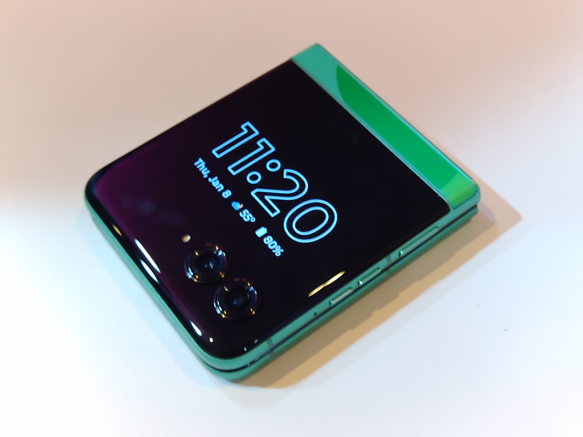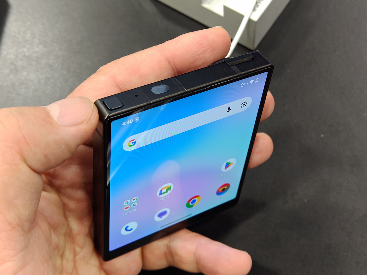 本体サイズは約86×72×8.9mm、重量は132g。ディスプレーは4.02型の1240×1080ドットでリフレッシュレートは60Hz。ディスプレー表面は9H相当のガラスで保護され、傷がつきにくくなっている。カメラは5000万画素1つで普段は背面側に折りたたまれており、必要に応じて180度開けばフロントカメラにもなる。