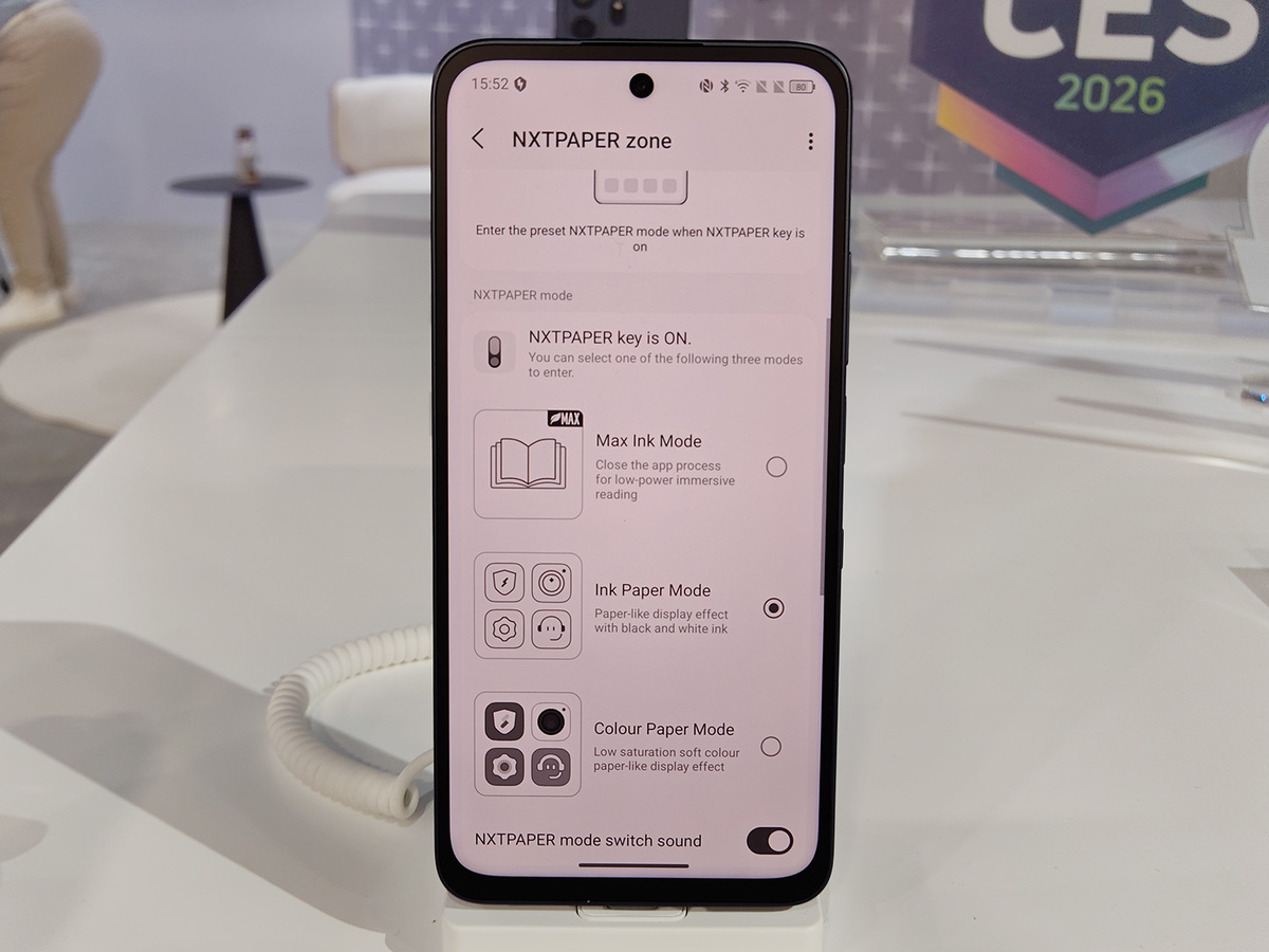 本体の右側面にはNXTPAPER keyを備える。スライド型のスイッチで、Full Color Mode、Color Paper Mode、Ink Paper Mode、Max Ink Modeを切り替えできる。それぞれ液晶フルカラー表示、カラー電子ペーパーに似た表示、モノクロ電子ペーパーに似た表示、モノクロ2階調表示となる。
