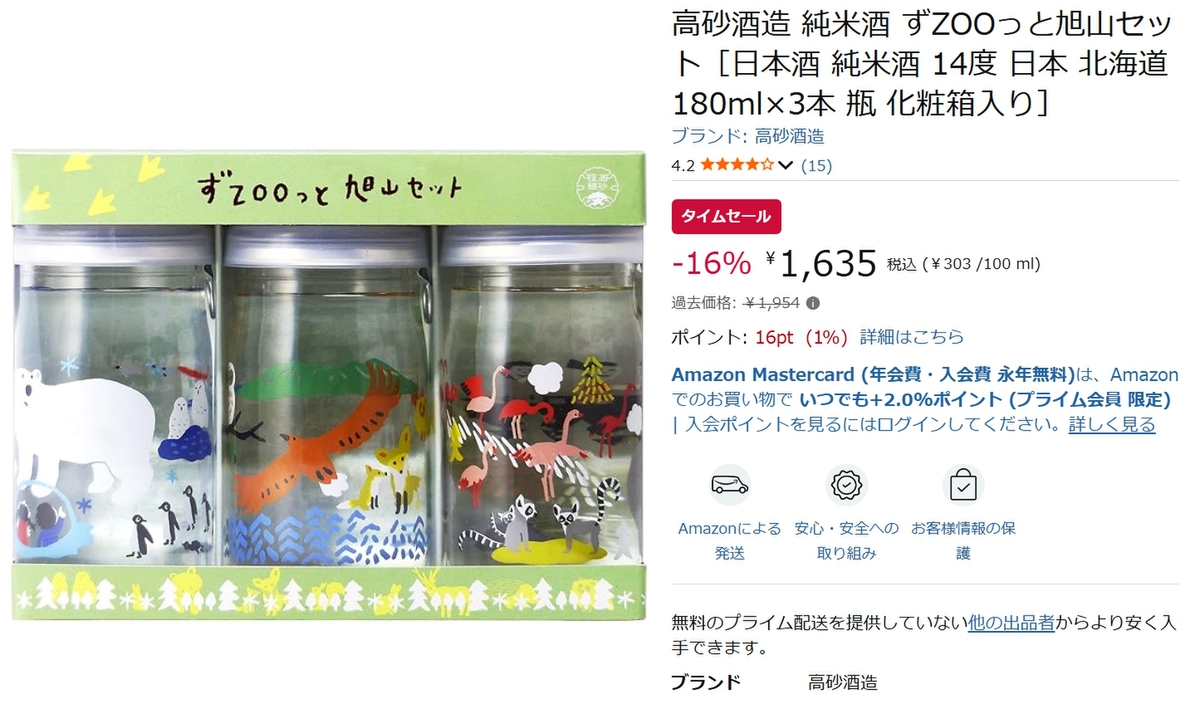 高砂酒造「純米酒 ずZOOっと旭山セット」がAmazonタイムセールに登場しています。