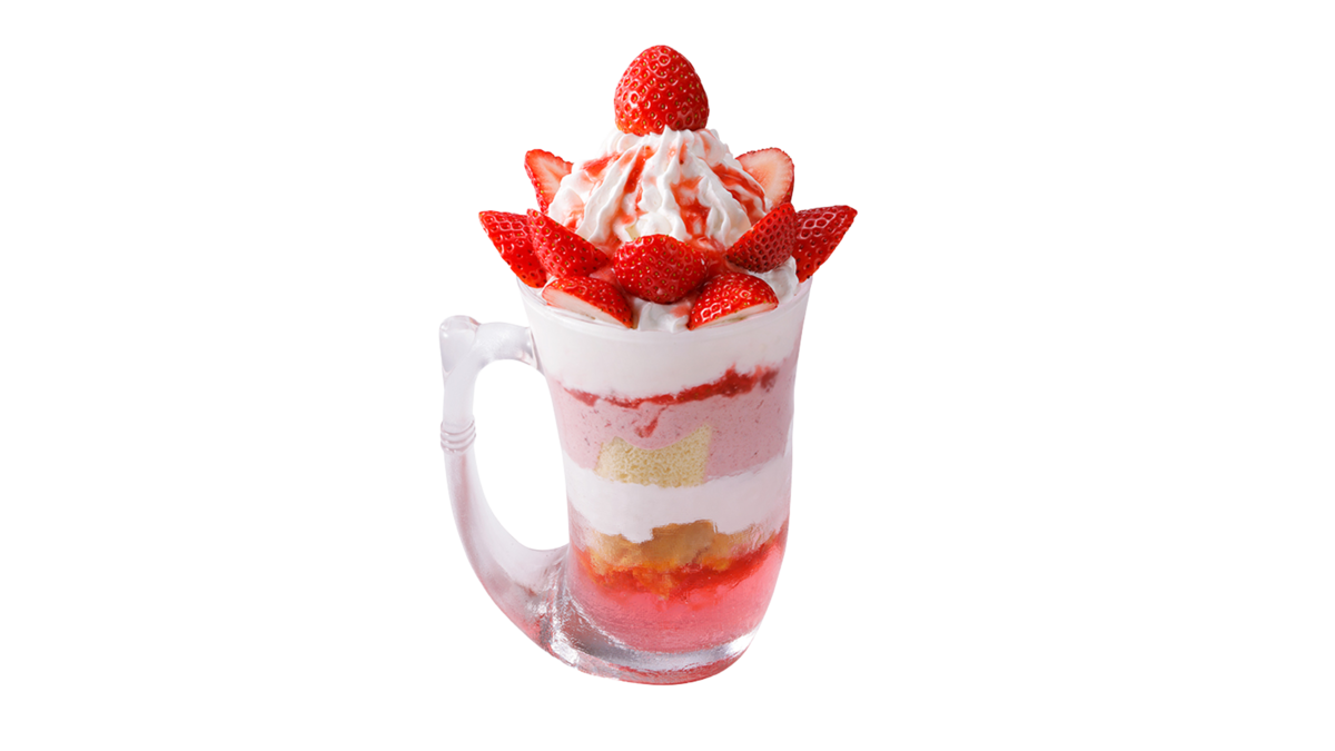 完熟いちごを7粒使用し、いちごのマスカルポーネやいちごゼリー、シフォンケーキ、ホイップクリーム、アイスクリームなどを大きなジョッキに盛り付けたデザートです。