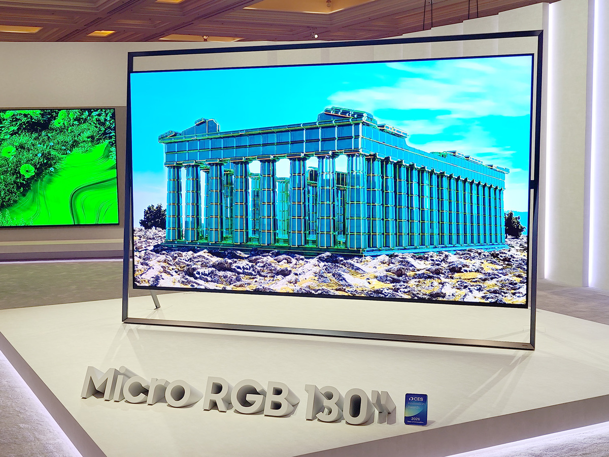CESでのサムスンの顔といえる製品は、最新技術を搭載したテレビだ。世界初となる130型のマイクロRGBテレビ「R95H」を公開した。バックライトに極小サイズのマイクロLEDを採用したことで、高い輝度とコントラストを両立。さらに広い視野角と色再現性の高さも特徴となる。明るい環境でも色の鮮やかさや階調が損なわれにくく、画質劣化や輝度低下もおきにくい。次世代の大型テレビ向けパネルとして業界が注目する技術だ。