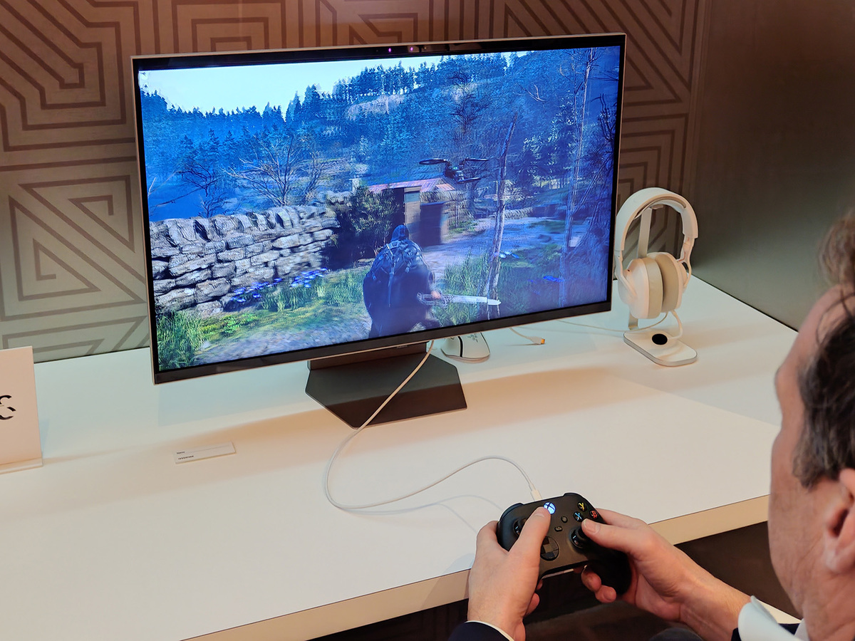 ゲーミング向けのモニターもさまざまな製品が展示されていたが、裸眼3D表示可能な「Odyssey 3D(G90XH / G90XH6K)」が注目だった。32型で6K解像度(6114×3456ドット)、最大リフレッシュレート165Hz。解像度を3Kに落とすと330Hzまで利用できる。モニター上部のカメラがリアルタイムで視線を追跡し、眼鏡をかけずとも3D表示ができる。また、3Dをオフにして一般のモニターとしての利用も可能だ。