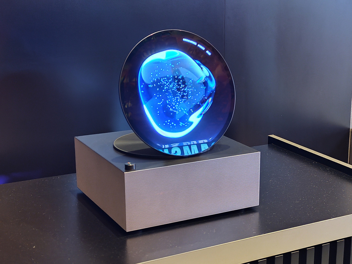 開発中のコンセプト製品としては、透明有機ELディスプレーなどに加え、円形ディスプレーを使ったメディアプレイヤーの展示があった。13.4型の円形OLEDパネルは、タッチ対応でレコードを模した表示を行ない、下部のプレーヤー部分からはモーターでディスプレーを稼働できる。操作のしやすさに加えインテリア性を高め、アナログ感も味わえるという、ディスプレーの新しい展開事例の1つだ。