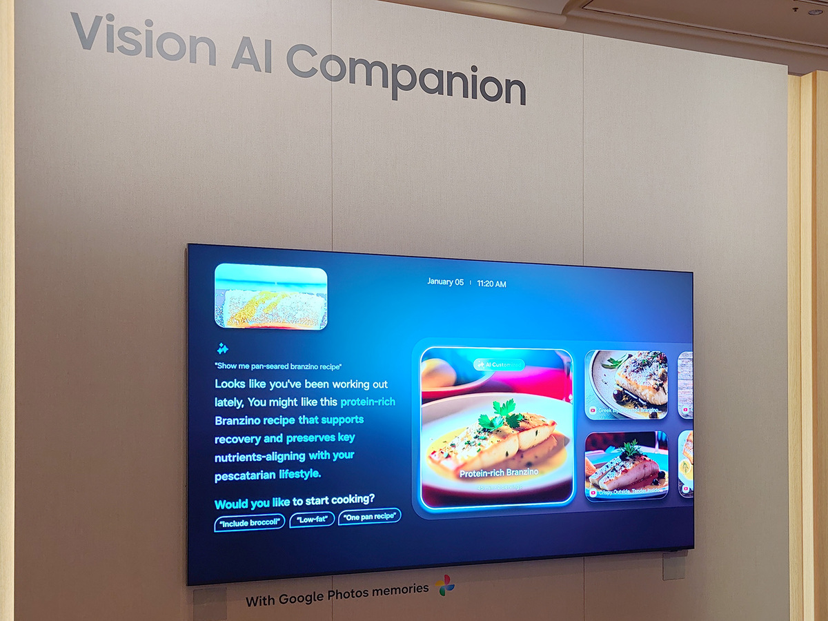 そして、冷蔵庫内の食材をカメラを使って管理する「AI Vision」のAI機能がGeminiベースになり、自動認識できる食材の種類が大幅に広がった。さらに従来は食材の在庫管理、在庫を基にした簡単なレシピ提案にとどまっていたが、Geminiによりユーザーの嗜好や朝・昼・夜など時間帯による料理のリコメンド、また、在庫をもとに1週間分の献立を作るといった機能に拡張された。「中身が見える冷蔵庫」から「献立提案をするキッチンAI」へと進化したのである。