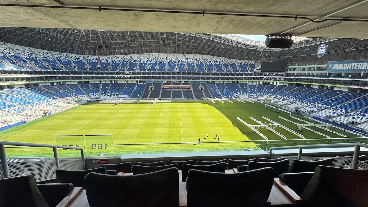このスタジアムの最大の特徴は、その絶景。客席の隙間から、モンテレイの象徴である奇峰「セロ・デ・ラ・シジャ(鞍の山)」がそびえ立つ様子が見えます。スタジアム開業から10年ほどと新しいので、各施設はかなり新しく綺麗な感じです。