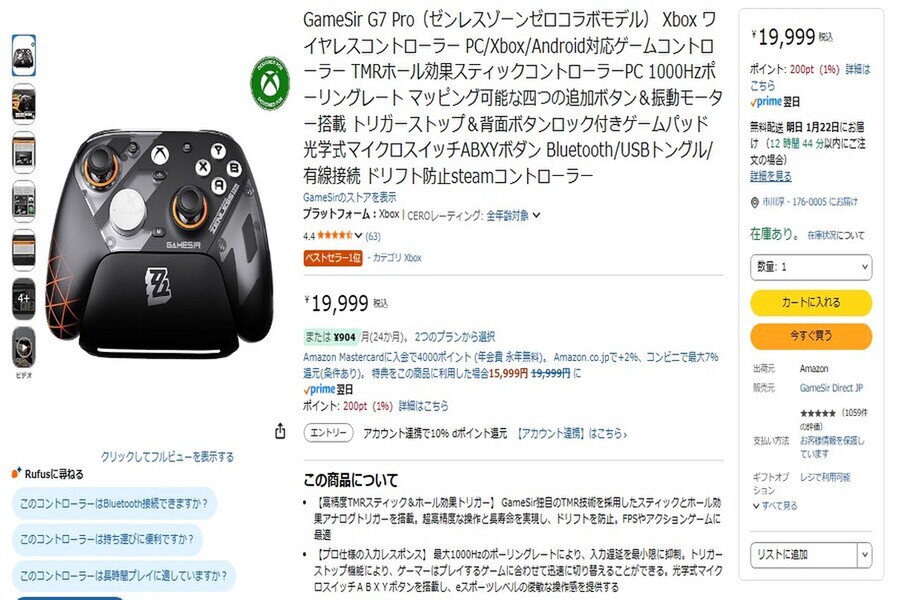 Amazon.co.jpにて、GameSirのXboxワイヤレスコントローラー「GameSir G7 Pro ZZZエディション」が販売中だ。価格は1万9999円。
