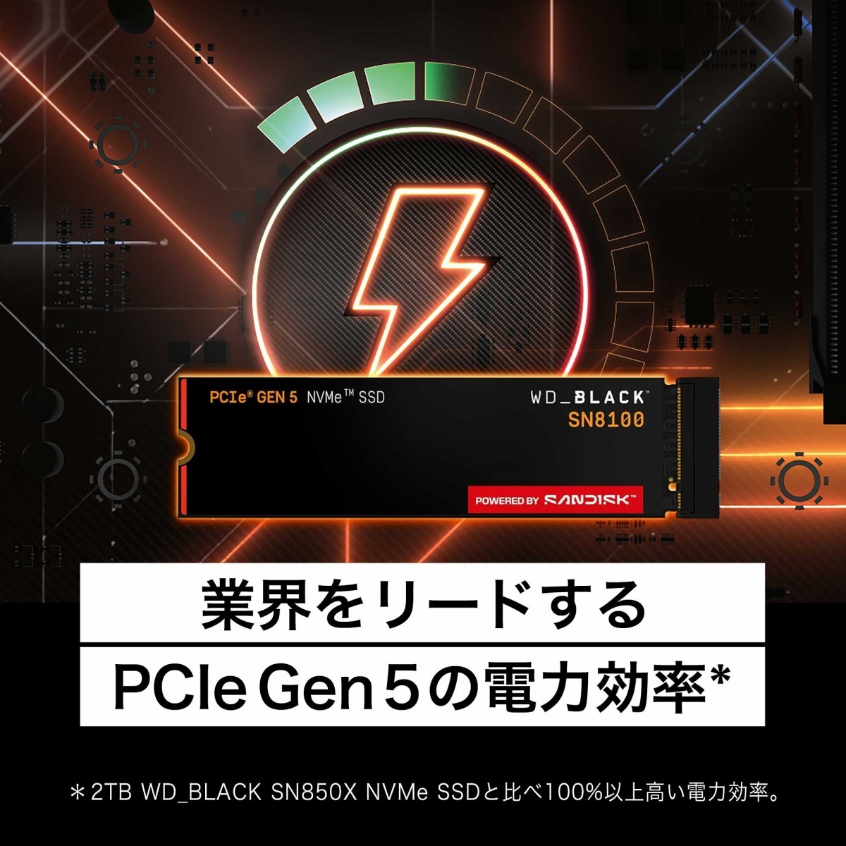 「WD_BLACK SN8100」シリーズは最新の第8世代TLC 3D CBA NANDを採用し、前世代のGen 4ドライブ「WD_BLACK SN850X」(2TB)と比較して2倍という高い電力効率とパフォーマンスを発揮する。低消費電力かつ発熱が抑えられており、マザーボード付属のM.2ヒートシンクでも十分に冷却可能。発熱に悩まされがちなGen 5 SSDの中でも、非常に扱いやすいのはメリットだ。