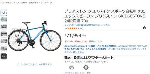 ブリヂストンのクロスバイク「XB1」が、ただいまAmazonで71,999円で販売中です。