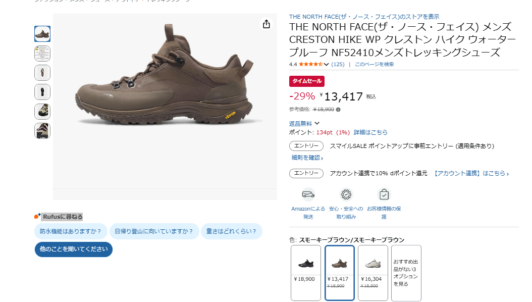 初めての登山にもピッタリ!ザ・ノース・フェイスの「クレストン ハイク ウォータープルーフ」が参考価格18,900円から29%オフの13,417円で、Amazonタイムセールに登場!