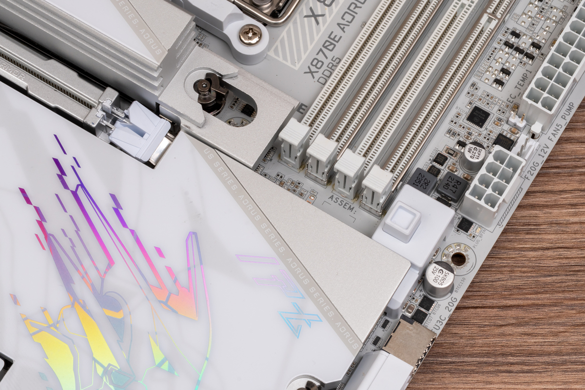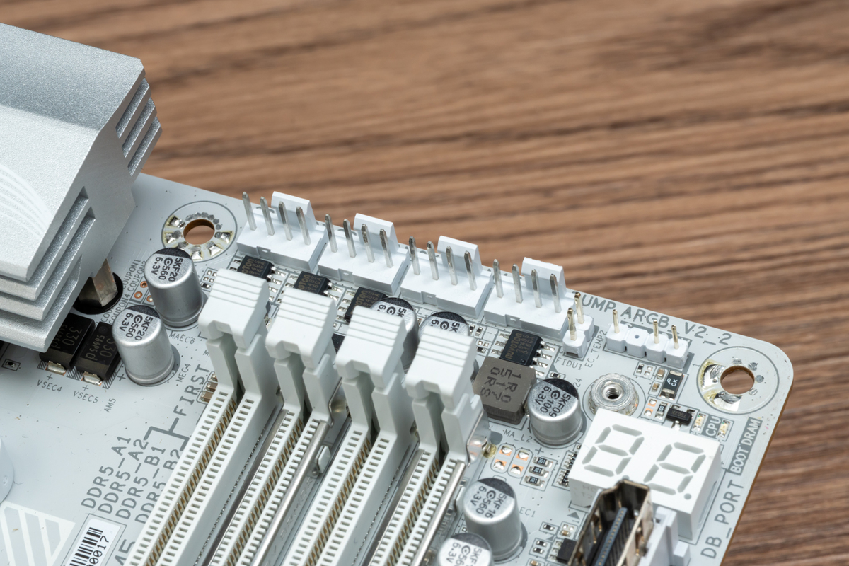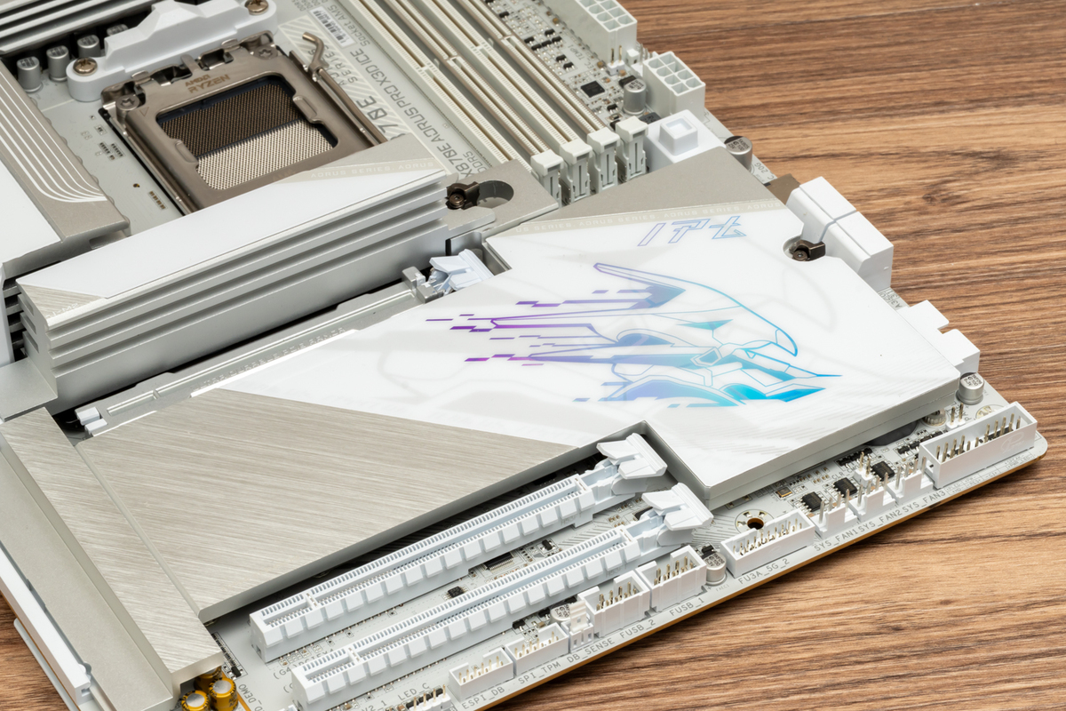 ほかにも、HDMI内部出力端子や、DDR5メモリースロットに風を送るファンの「DDR Wind Blade」、マザーボードに追加で電力を供給するPCIe 8ピン補助電源コネクターの装備など、ハイエンドに準ずる機能を有する。