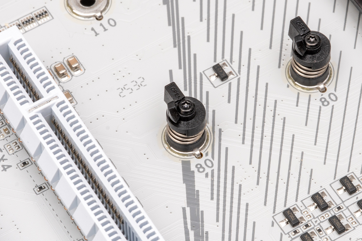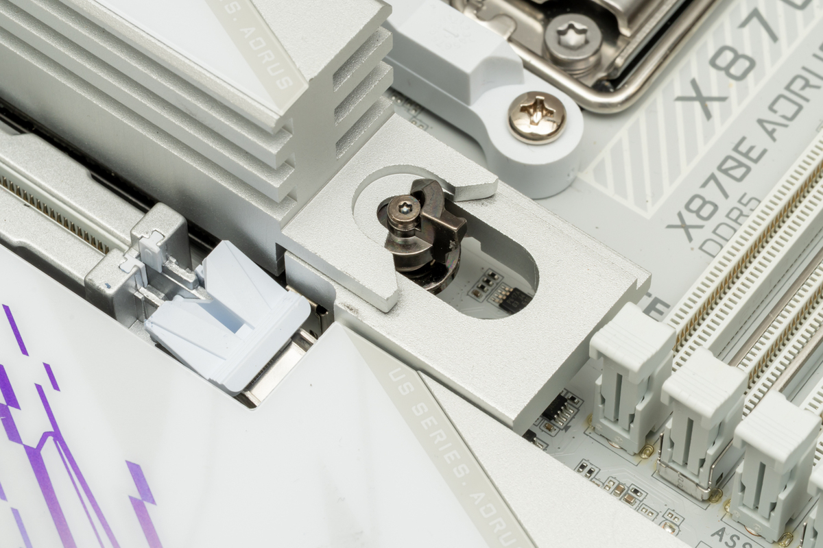 M.2 SSDの基板を上から押し込むだけで、カチッと固定できる「M.2 EZ-Latch Plus」。サクッと取り付けできる