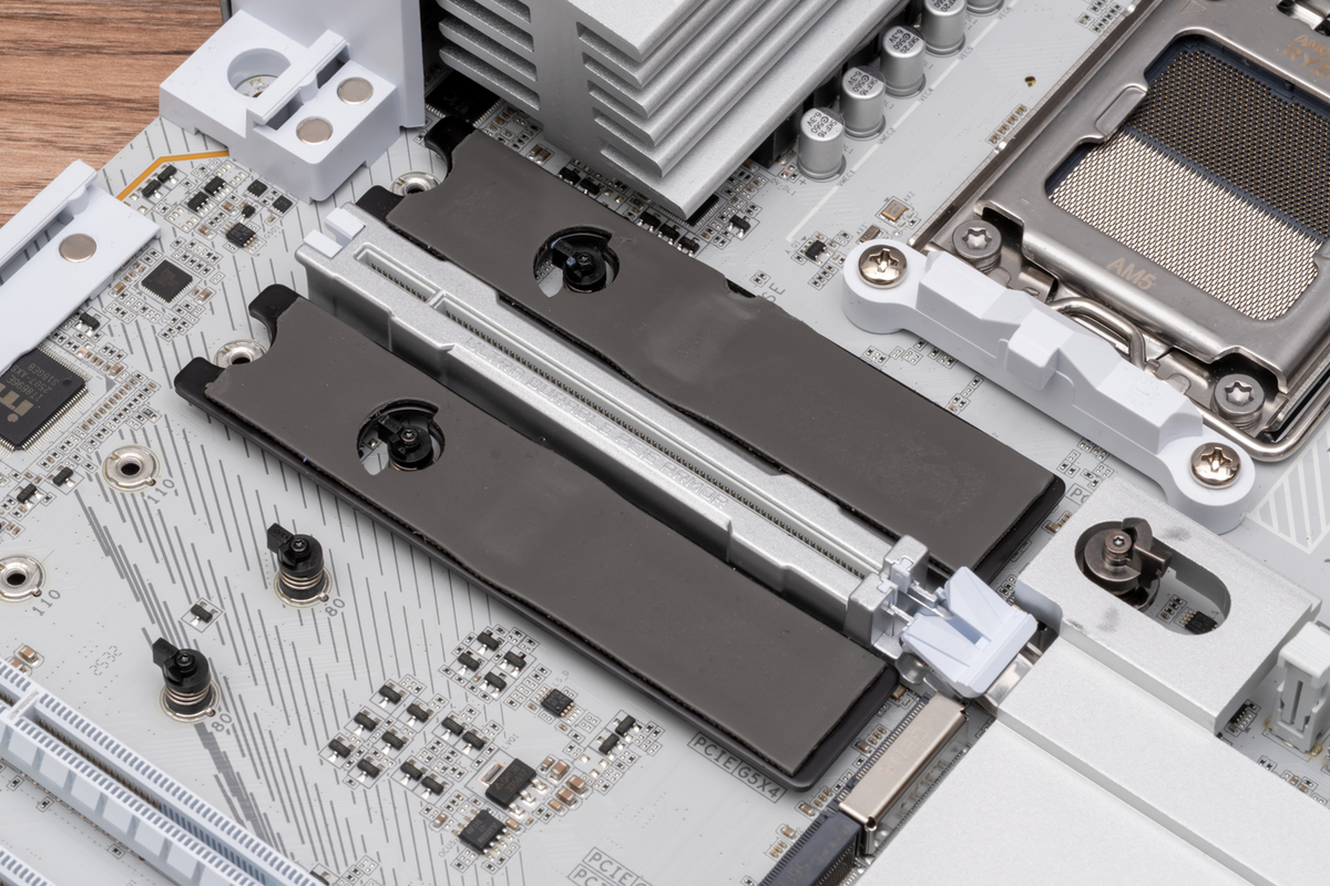 PCIe 5.0×4動作に対応する2基のM.2 拡張スロットには、基板裏面からも放熱する「M.2 EZ-Flex」を装備