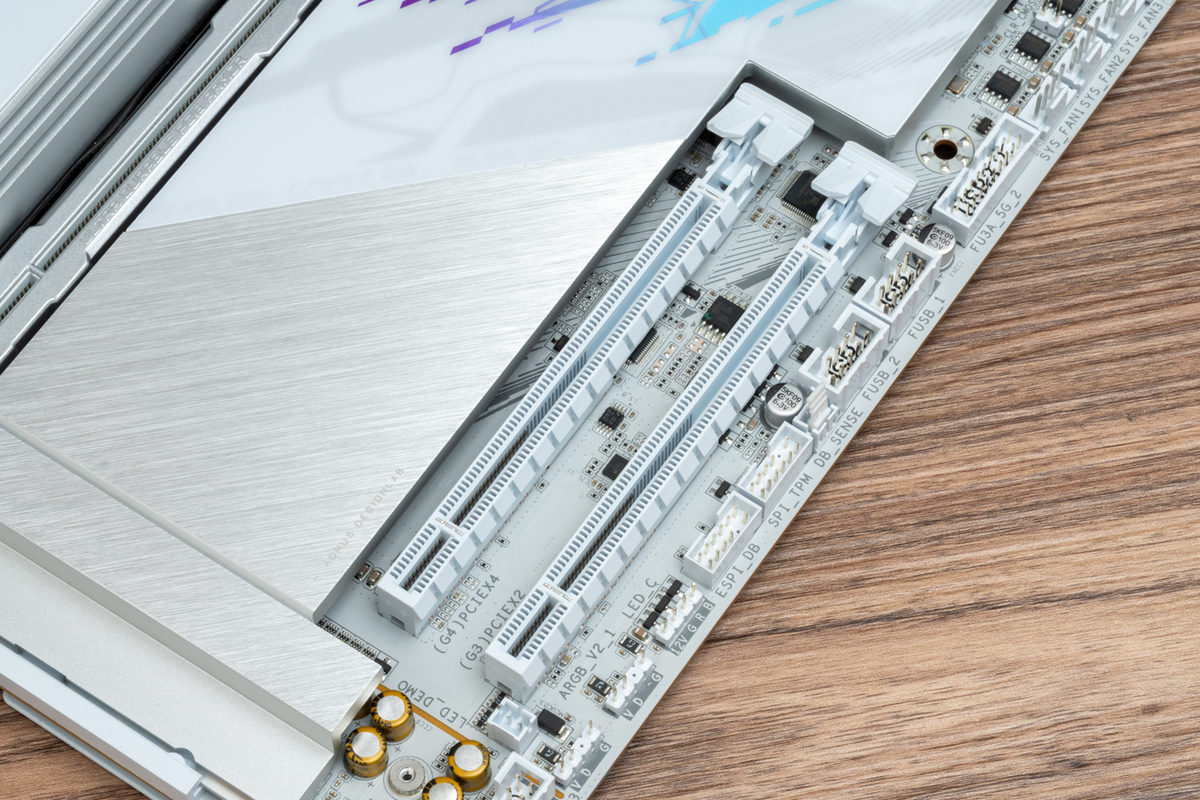 2基の×16形状PCIe拡張スロット。PCIe4.0×4とPCIe3.0×2動作に対応する