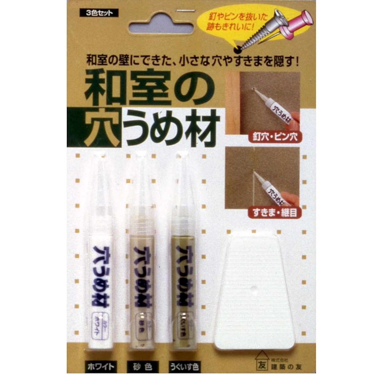 さらに、ホワイト+砂色+うぐいす色というセットの「和室の穴うめ材3色セット」(実売750円前後)や、白木色+オーク+アンバーの「木部の穴埋め材3色セット」(実売750円前後)などもありますので、白系以外の補修を考えているなら、こちらを活用するといいでしょう。