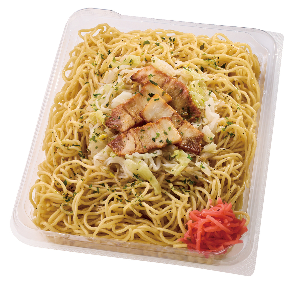 従来品の「大盛塩焼そば」と比較して、麺重量を約50%増量。あっさりとした旨みが楽しめる塩焼そば。