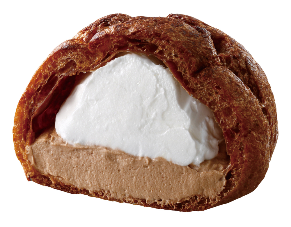 従来品の「大きなチョコシュー」と比較して、チョコクリームとホイップクリームの量を約50%増量。香りのよいチョコクリームとホイップクリームの2層仕立て。