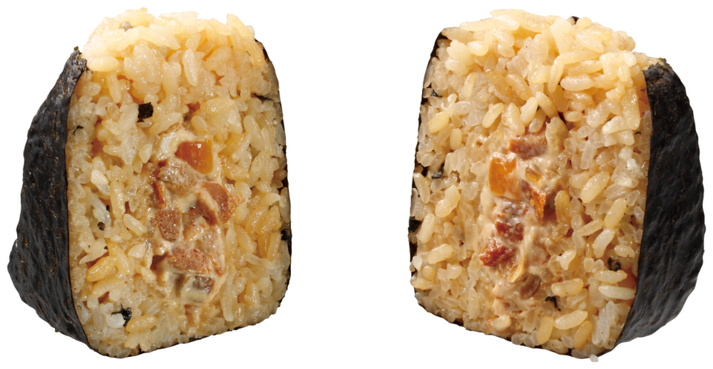 従来品の「高菜明太おにぎり」と比較して、総重量を約50%増量。高菜と明太子を組み合わせた、ごはんが進む旨味のあるおにぎり。