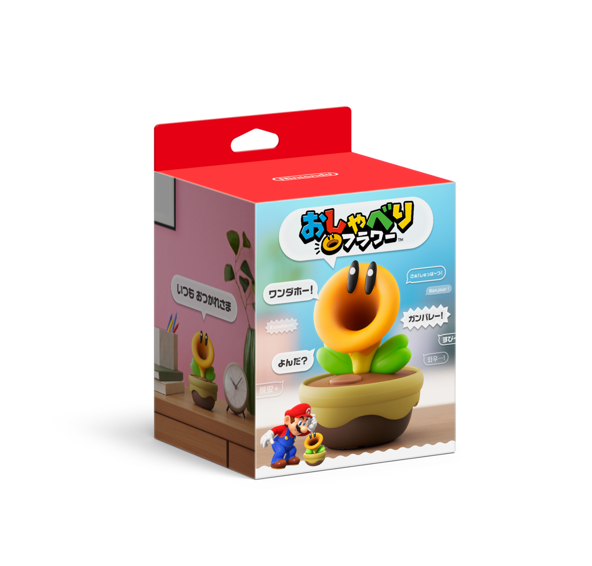 ゲームの世界を飛び出してやってくる「おしゃべりフラワー」。放置すると気ままにしゃべり出すグッズで、いろいろなことを話す。設定によっては起床時刻や就寝時に声をかけてくれる機能も。