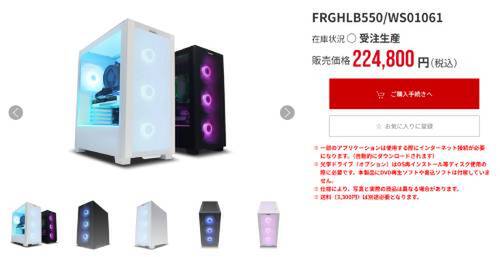 今回は掲載モデルの中から、GPUの違いが分かりやすい3台をピックアップしました。いずれも受注生産モデルで、フルHD解像度でのゲームプレイを中心に検討しやすい内容です。