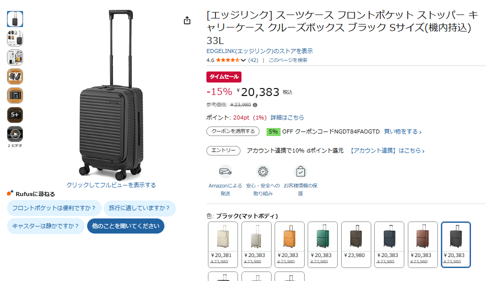 EDGELINKのスーツケースが15%オフ!