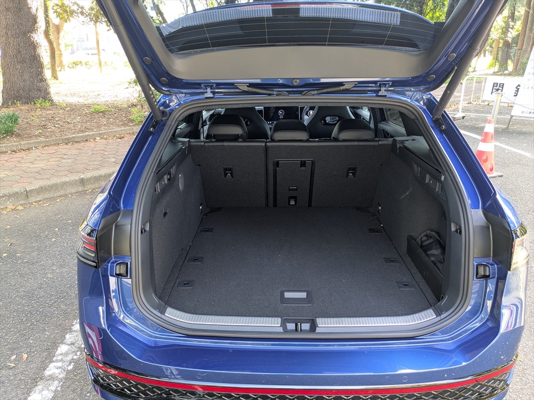 ステーションワゴンタイプということで、まずは荷室をチェックしてみましょう。バックドアとのつなぎ目がないので、荷物の出し入れがしやすいのが〇。次に荷室容量が690Lもあり、後席を倒すと床面につなぎ目がなく、1920Lまで拡張できるのが〇。使い勝手もよく、AC100Vのレセプタクルが用意されているのも、プライバシーシェードが床下に収納できるのも〇。つまり理想的な荷室空間で◎なのです。