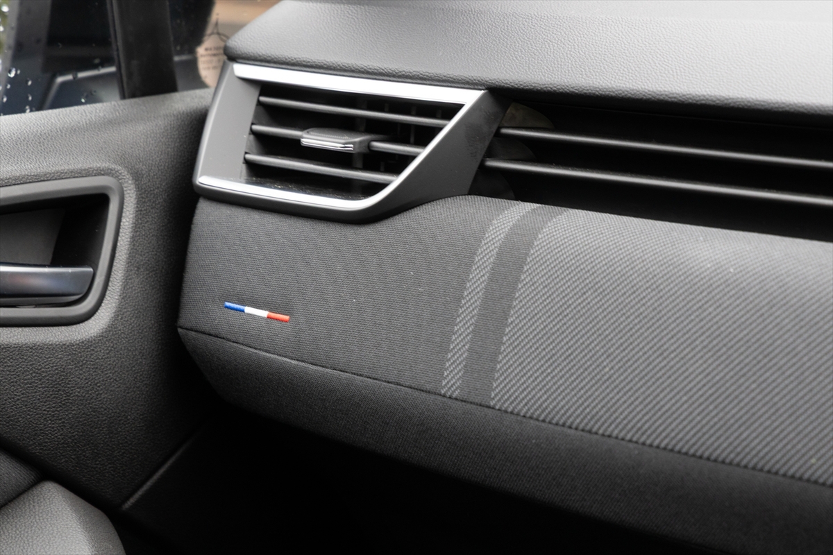 インテリアは大型の9.3インチ縦長ディスプレイが印象的。ダッシュボードやドアパネルはグレーのファブリックとしたほか、シートはよりホールド感を高める形状へとチェンジ。ヘッドレストなどにアルピーヌの「A」のロゴが入り、スポーティーな印象を強めています。シートベルトをはじめ、各所に青いステッチが入るのもアルピーヌっぽくて素敵です。