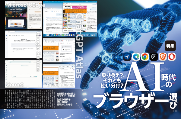 パソコンを使う上で必須のツールと言えるブラウザー。最近ではAI機能を強化した新しい選択肢が増えている。特集1ではその特徴を整理する。特集2は春の新生活を見据えた注目デジタル製品だ。