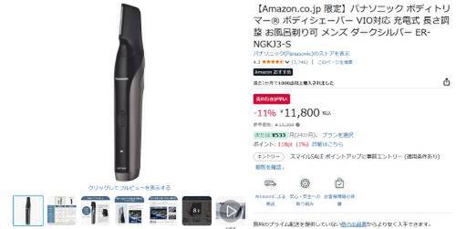 パナソニックのボディトリマー「ER-NGKJ3-S」が、Amazonのタイムセール対象になっています。参考価格13,200円のところ、11%オフの11,800円で販売中です。
