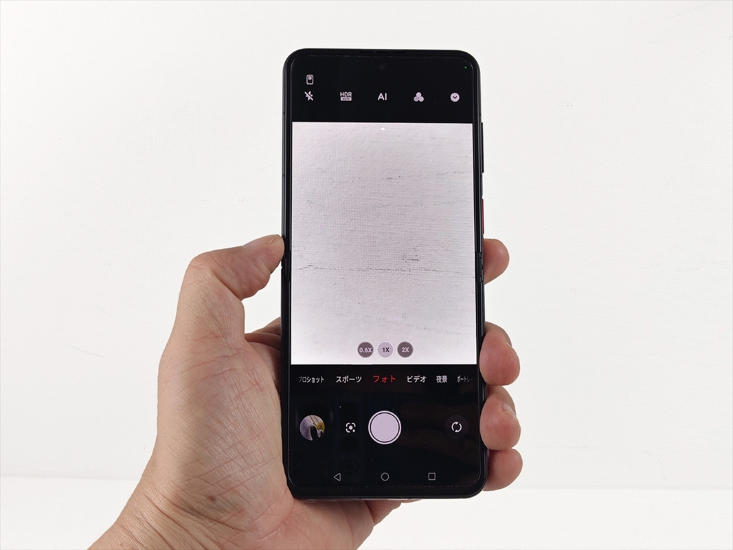 カメラは前述したように、5000万画素と1200万画素のデュアル仕様。望遠カメラがない分、カメラアプリの画面内表示はかなりスッキリしている。標準ではデジタルの2倍望遠撮影もワンタップで可能だ。