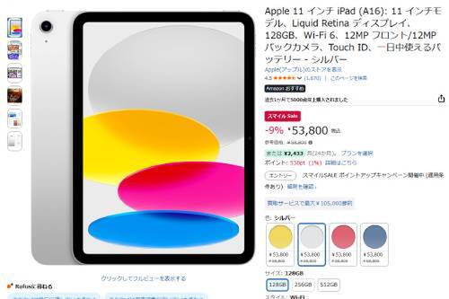 【Amazonスマイルセール】Apple 11 インチ iPad(A16)を見てみる