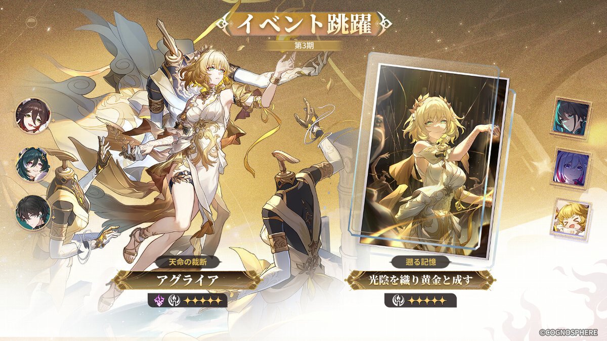 また、同時開催のイベント跳躍・光円錐「遡る記憶」では、限定星5光円錐「光陰を織り黄金と成す」の出現率がアップ。