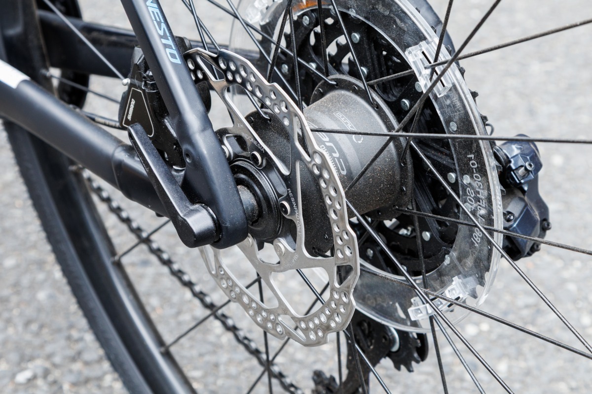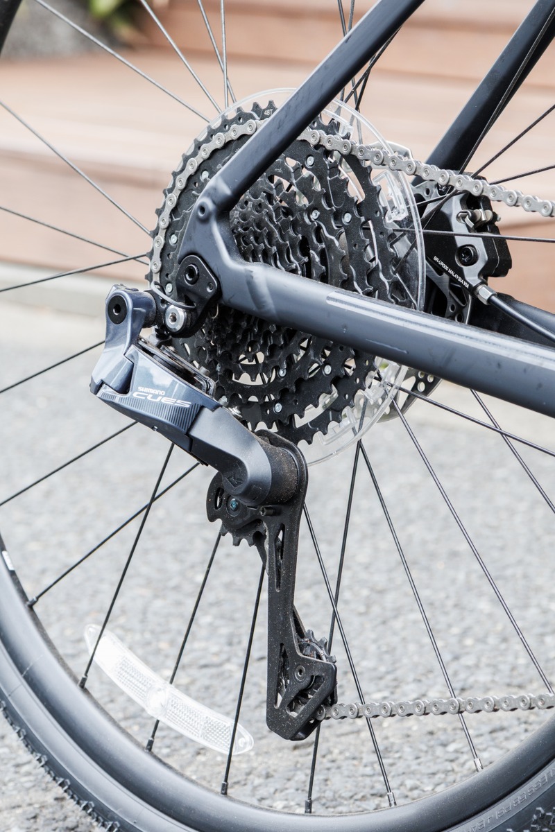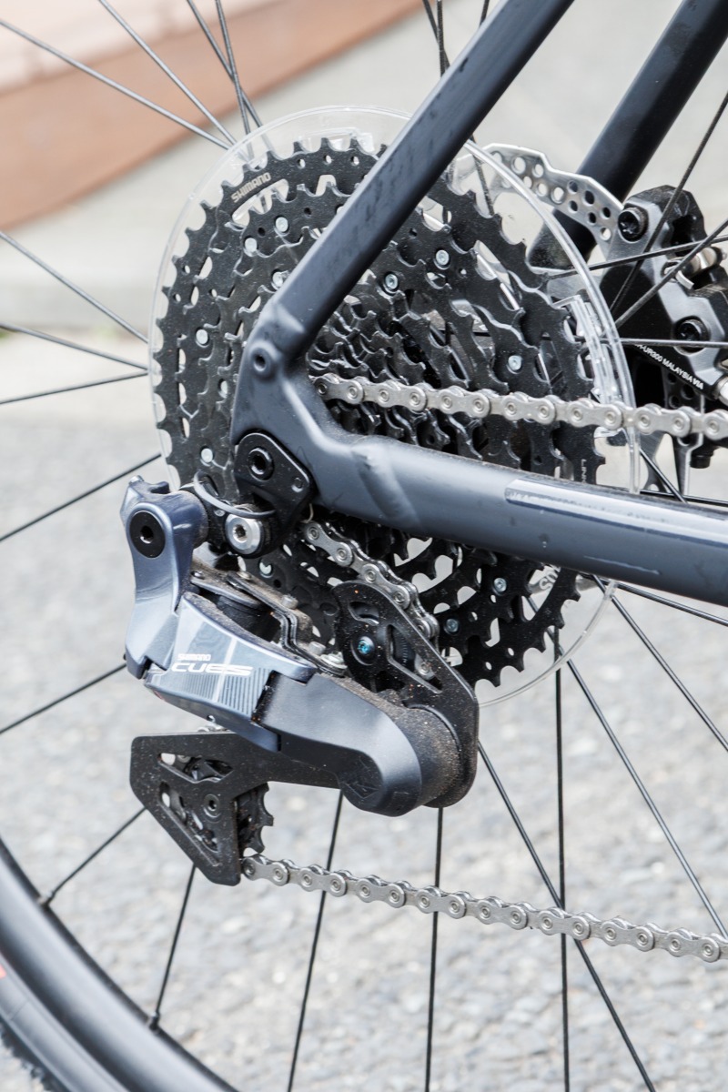 「AUTOMATE」は、シマノの電動変速システム「Q’AUTO」(クオート)を搭載。一般的には電動変速のためバッテリー搭載が必要ですが、変速に要する電力は、後輪のハブダイナモとキャパシタでまかないます。このため充電作業は不要。長期間乗らない場合は、ある程度走行して一旦電力を貯める必要はありますが、定期的にバッテリーを充電する手間が不要なのは驚きです。