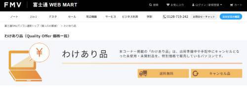 富士通 WEB MARTの「わけあり品」は、未使用・未開封のまま、販売条件が異なる商品をまとめたコーナーです。