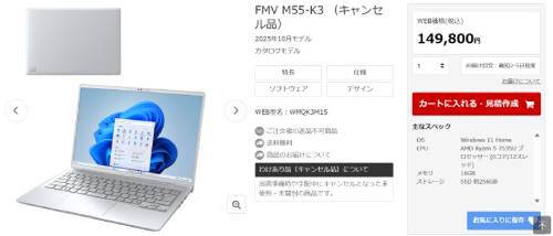 富士通 WEB MARTの「わけあり品」コーナーでは、出荷準備中や手配中にキャンセルとなった未使用・未開封のパソコンが、特別価格で販売されています。いずれも店頭で販売されているカタログモデルと同一仕様の、キャンセル品として扱われています。