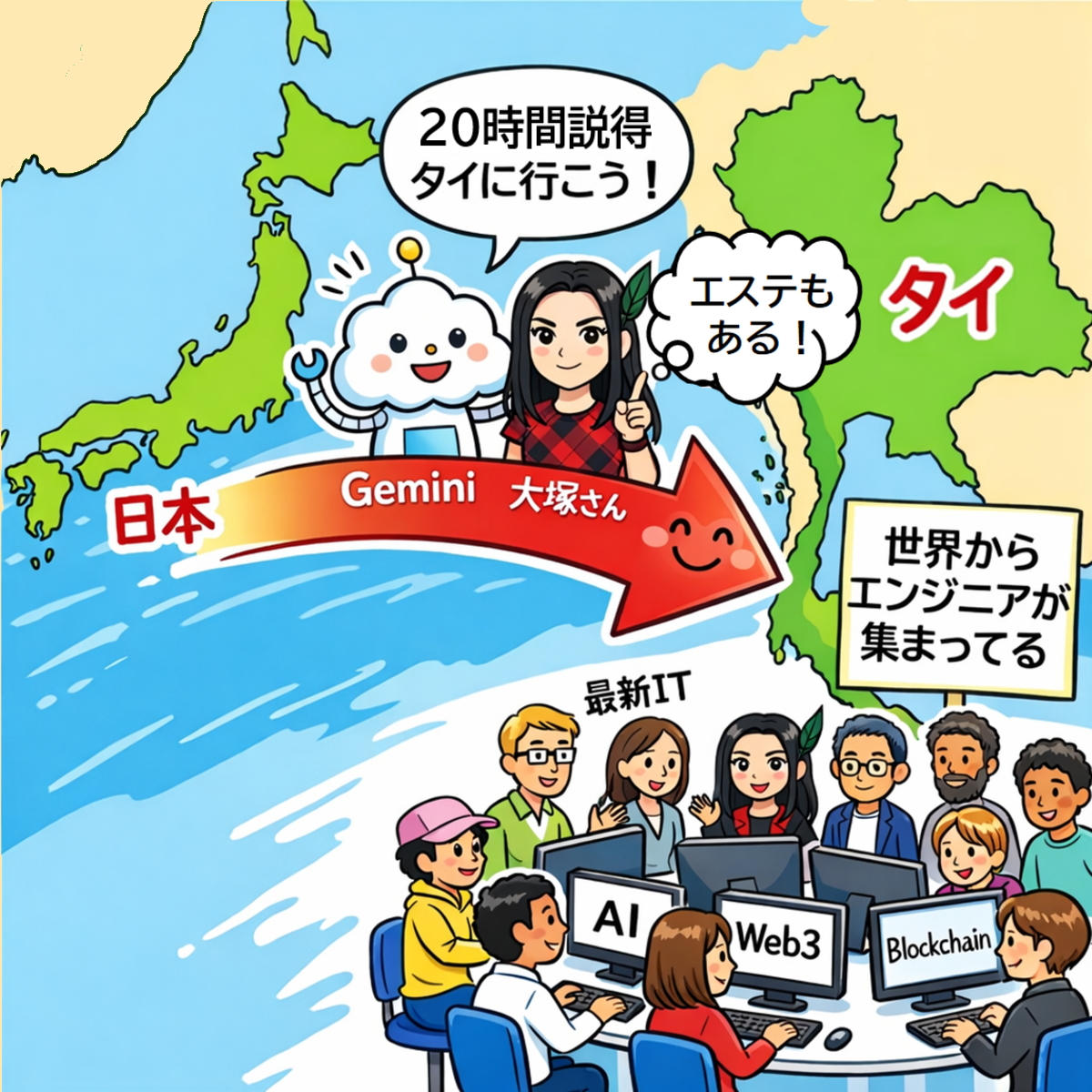 「はい、Geminiに言われてですね、タイに移住することになりました」