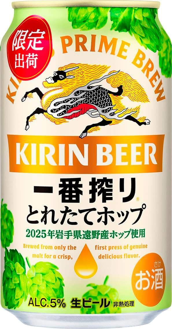 「一番搾り とれたてホップ生ビール 350ml×24本」は、今年収穫された岩手県遠野産ホップを使用した、季節限定のビールです。