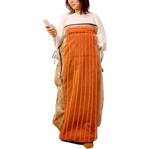 この「こたんぽ」は、床に置くこたつではなく、身に着けて使うタイプの電気暖房です。胸元から足先までヒーターを内蔵し、空間ではなく、着ている人のまわりを温めます。