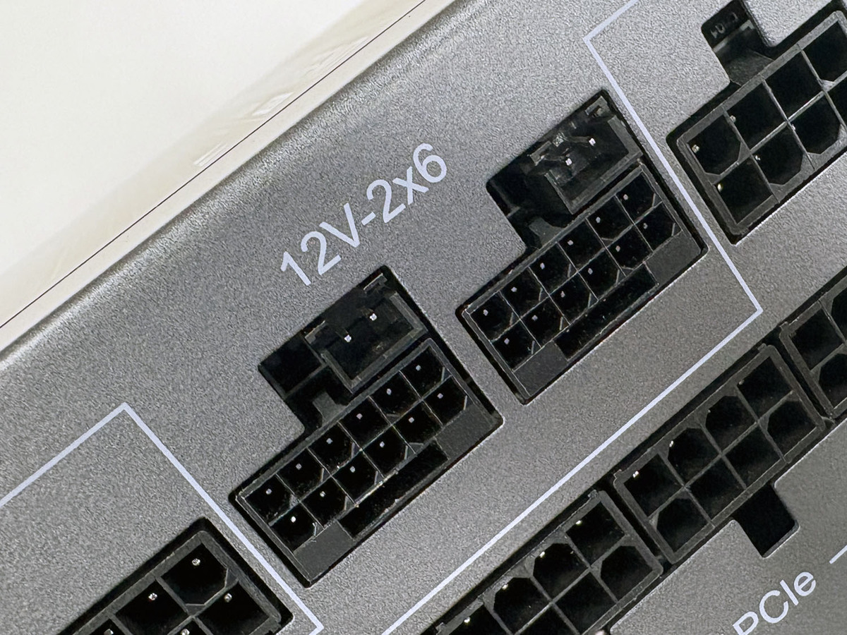 色分けは12V-2x6端子を根本までしっかり挿す確認のためだ。ASRock電源ではこの部分をグリーンとしている。端子を正しく挿すことが重要なのは、12V-2x6が最大600Wという大電力を流すケーブルであるためだ。12V-2x6の前身、12VHPWRの時からこの部分の挿し込みが甘かったことによって端子が融解、発火するといった事故がたびたび報告されている。