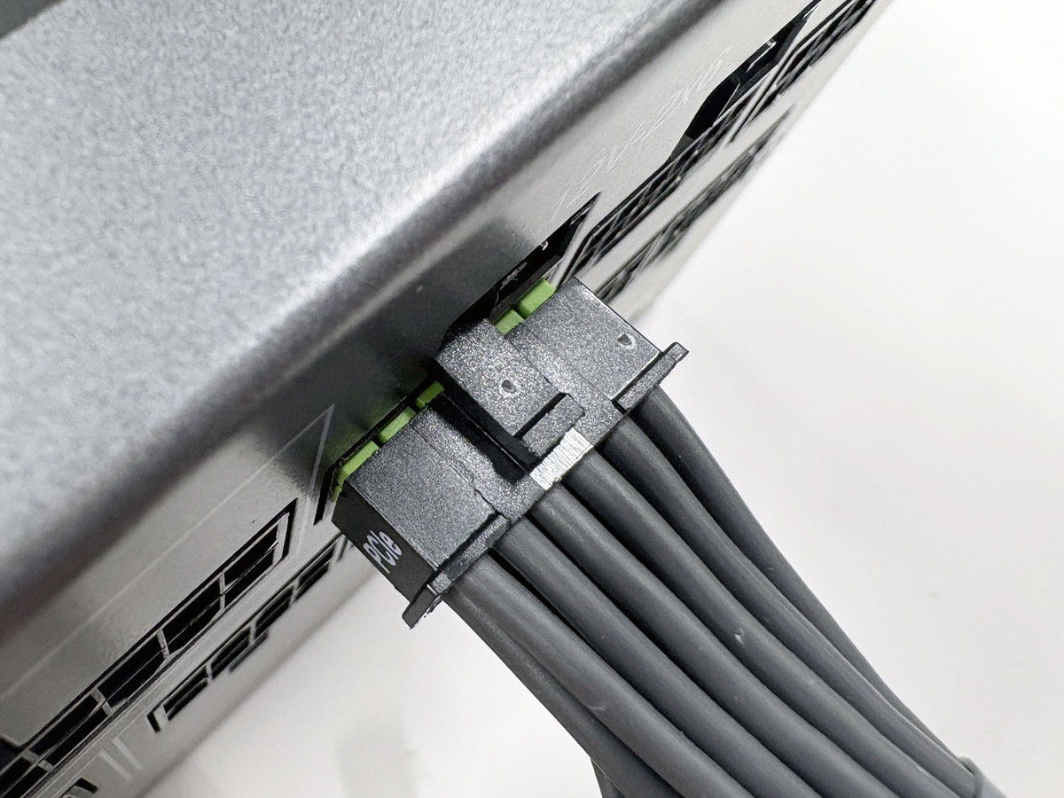 12V-2x6に変わっていくつかの対策は施されたものの、依然として大電力を流すケーブルであり正しく接続することの重要さは変わらない。端子のグリーンが見えない状態まで挿さればOKと、見た目で判断できるのは分かりやすい。