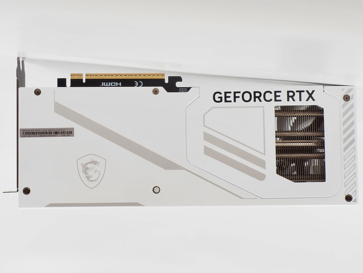 まずはビデオカードとのマッチング。今回はGeForce RTX 5070 Tiの最新モデル「GeForce RTX 5070 Ti 16G VENTUS 3X PZ」だ。ビデオカードは通常、上部に補助電源コネクタを搭載していたため、この端子とケーブルはどうしても隠せなかった。GeForce RTX 5070 Ti 16G VENTUS 3X PZは端子をカード上部ではなくカード内の下向きに配置し、ケーブル露出問題を解決している。ケーブルカバーはバックプレートの該当部分のみマグネット式で着脱可能とすることで見た目問題を解決している。「PZ」とあるのでもちろんProject Zero製品だが、マザーボードの奥行き、ケースの配線ホールさえ合えば通常ケース、通常マザーボードにも組み合わせ可能だ。