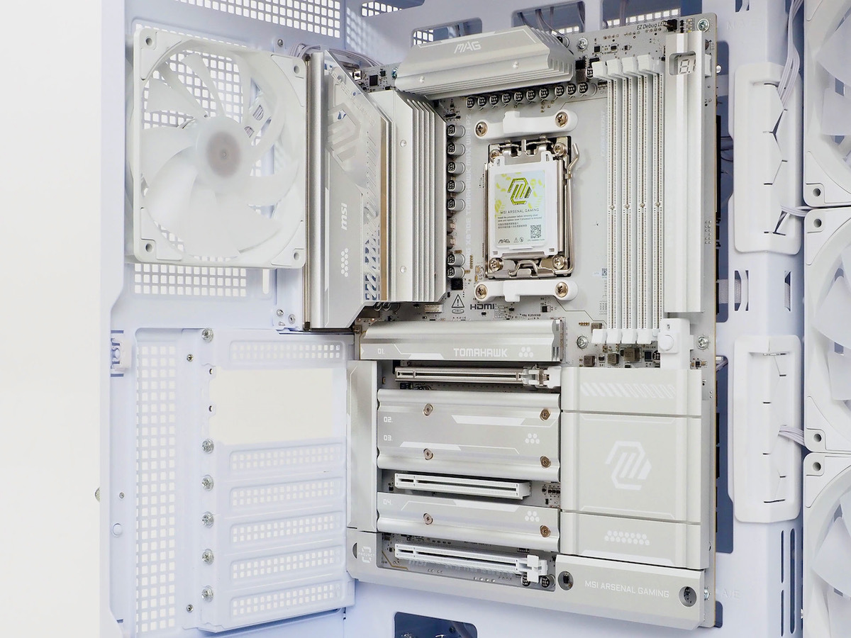 ここにGeForce RTX 5070 Ti 16G VENTUS 3X PZを組み合わせれば、背面コネクタマザーボードを使ってもムリだった12V-2x6ケーブルまでもが隠せるようになる。そしてホワイトの背面コネクタ対応ケースのMAG PANO 100R PZ WHITE。これは究極のホワイトPCを組む最強の組み合わせと言ってよいだろう。