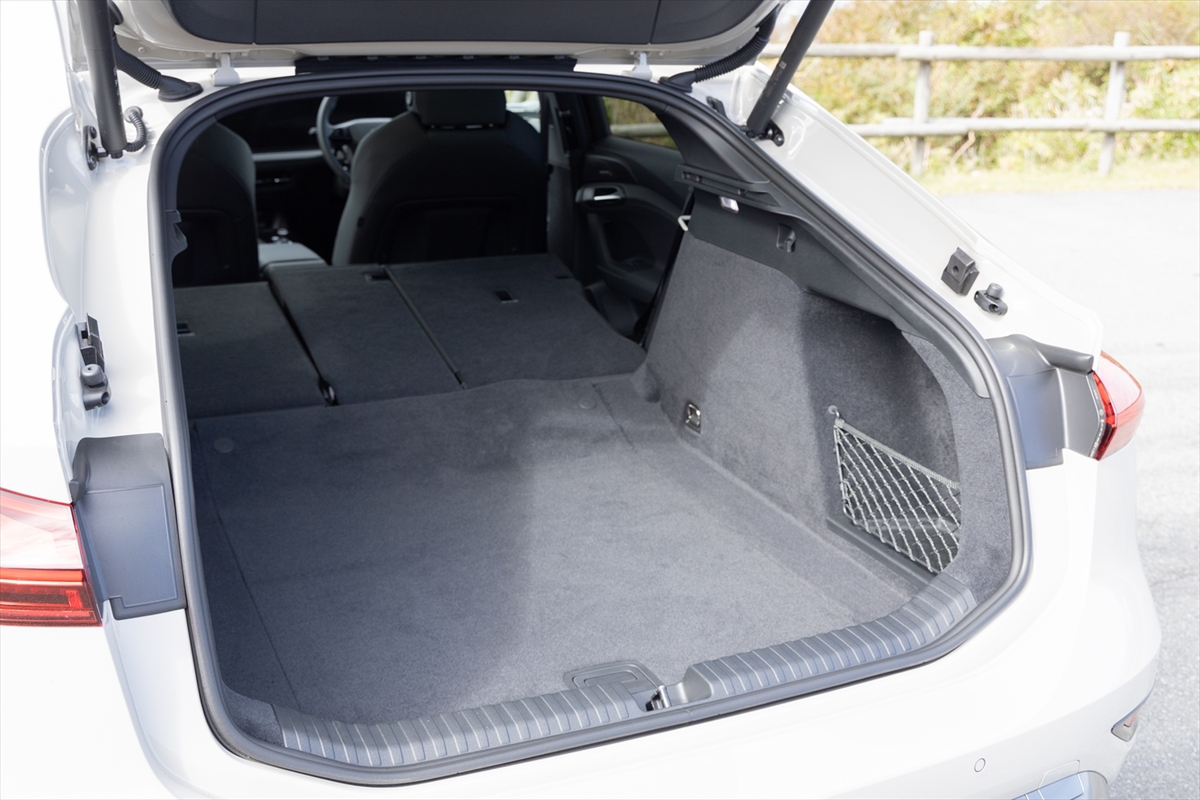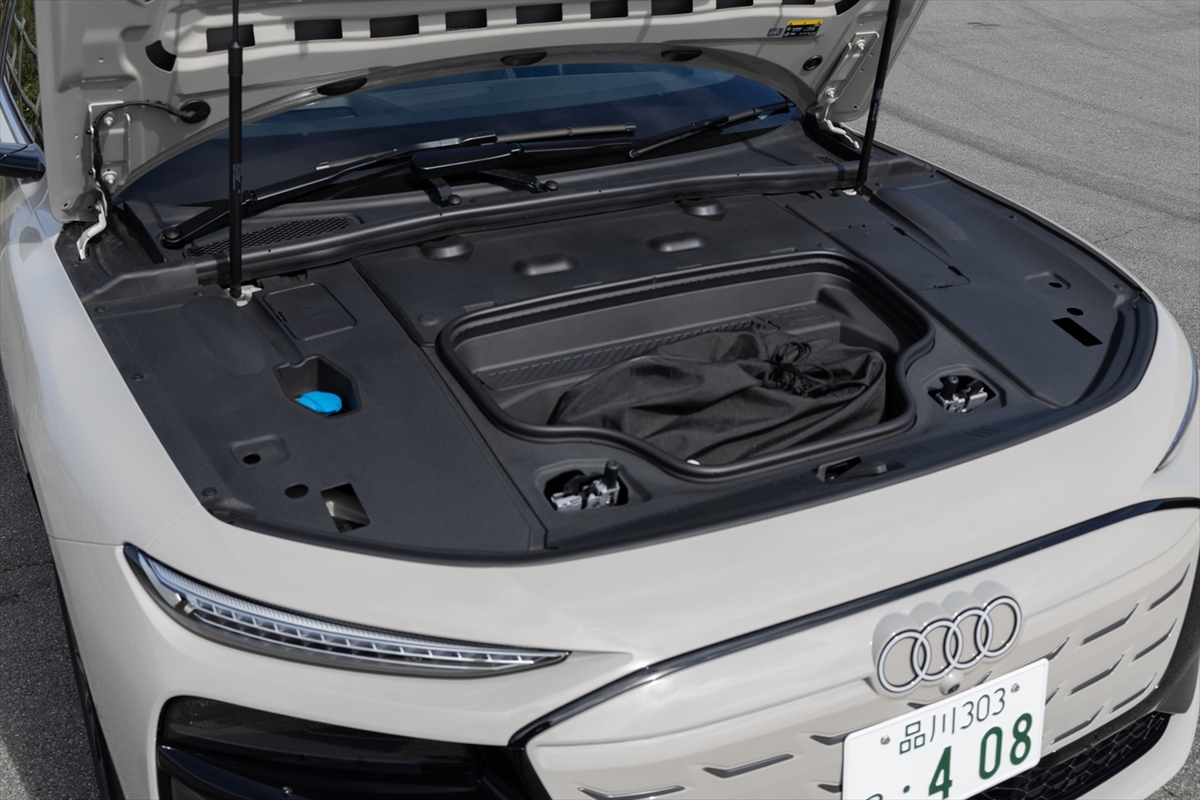 ボディーサイズは全長4930×全幅1925×全高1470mmでホイールベースは2950mm。その数字通り、やや大柄の印象を受けます。ホイールベースが長いので、最小回転半径は5.7mですが、6mを切っているので思ったよりは曲がるという印象もあります。ボディータイプは写真のクーペタイプ(スポーツバック)のほか、アヴァント(ステーションワゴン)の2種類を用意。アウディのBEVでステーションワゴンタイプは本機が初めてとなります。