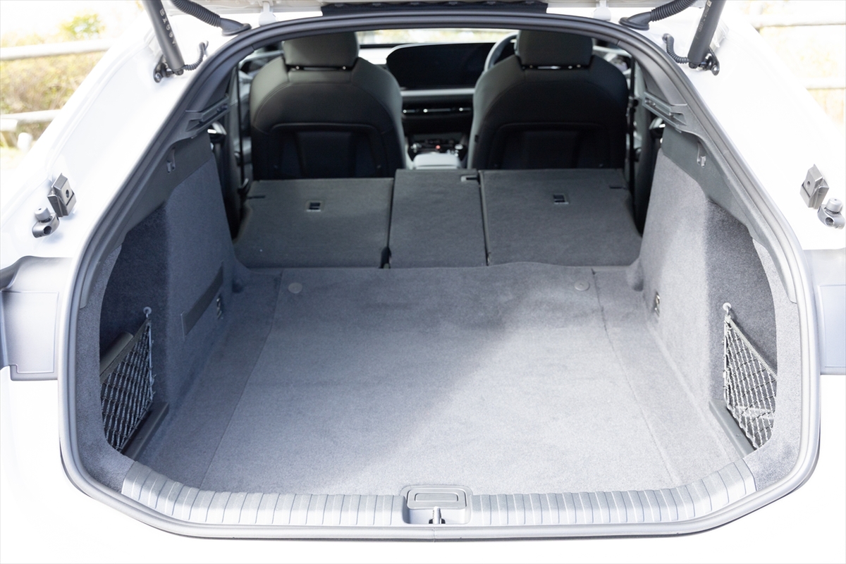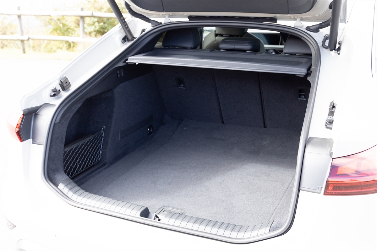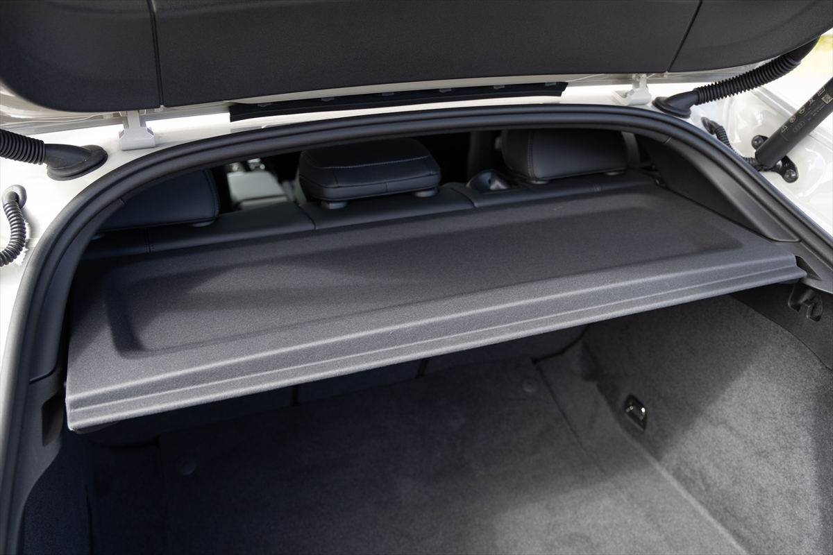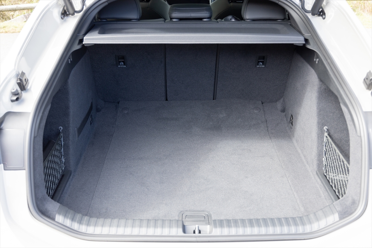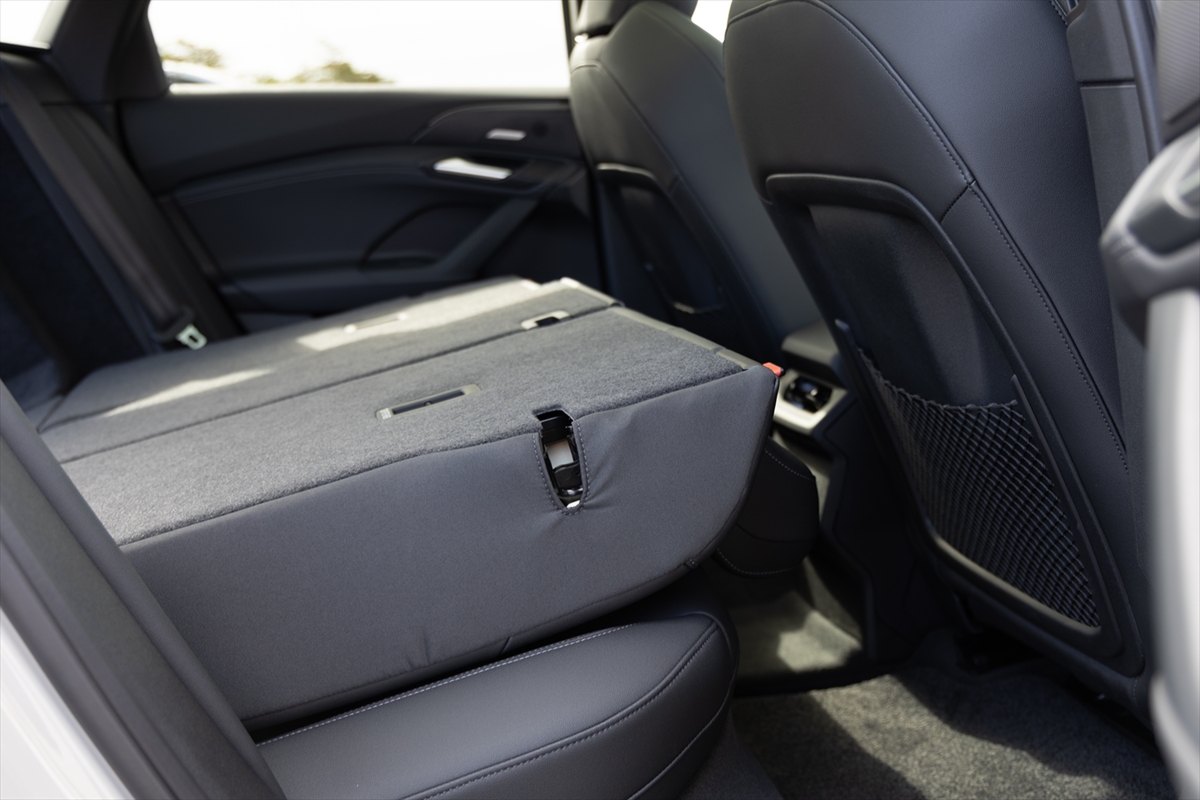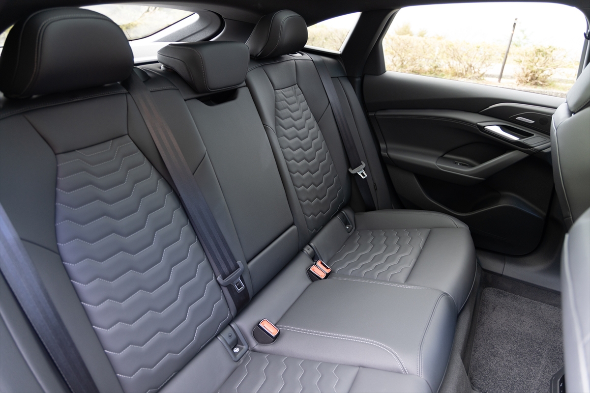 後席は前後方向の広さはありますが、クーペスタイルであること、そして床面にバッテリーを置くことからか、上下方向はそれほど高さの余裕はない雰囲気。大柄の人が乗ると、ちょっと窮屈な印象をうけるかも。この辺はアヴァント(ステーションワゴン)なら、そのような印象は少なくなることでしょう。