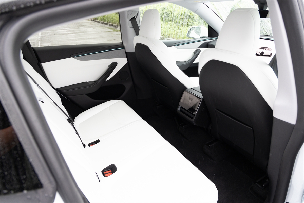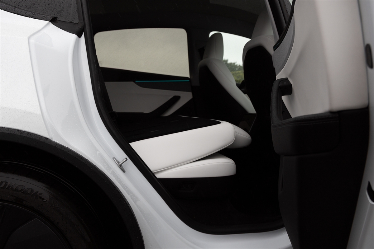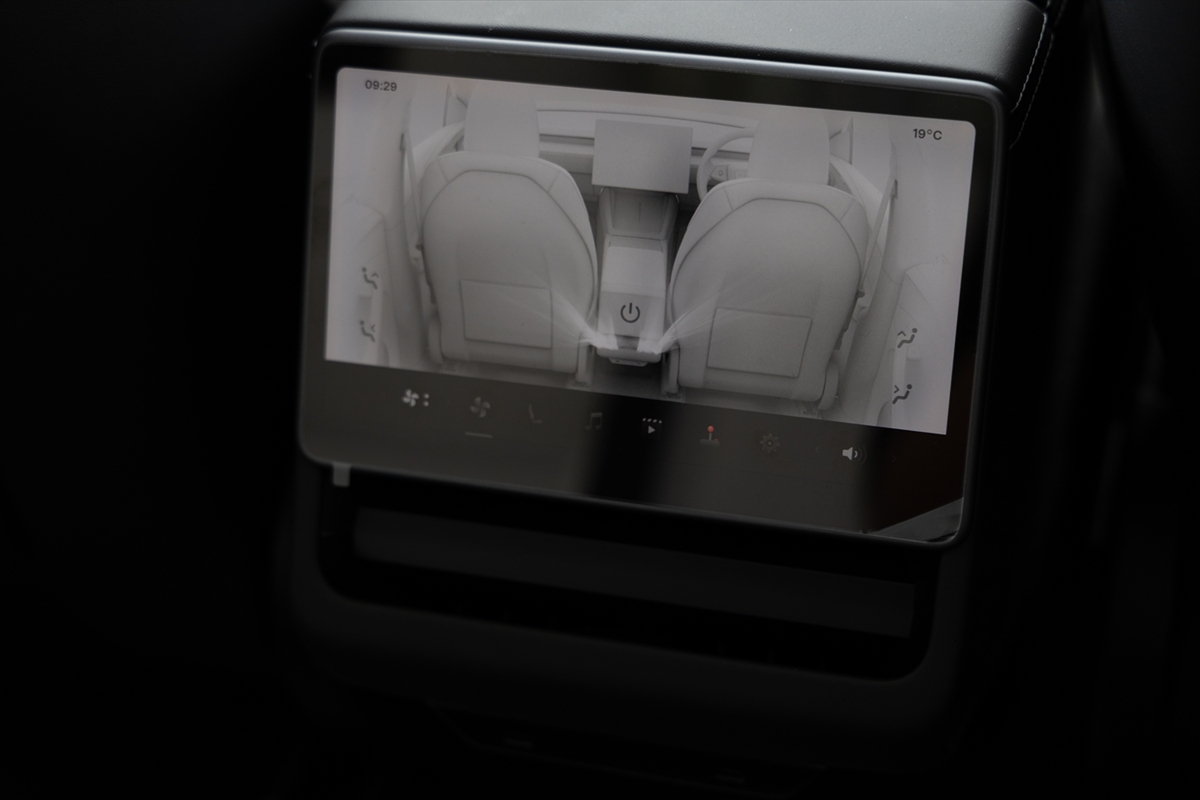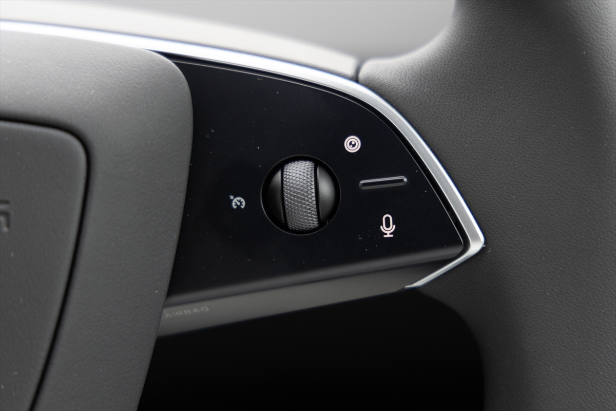 車内を眺めてみるとハンドルのほか、中央に15.4インチのタッチパネルディスプレイのみ。物理的なボタンやスイッチが極力排除されて、ステアリングホイールまわりに少しある程度というミニマリズムの極みそのもの。
