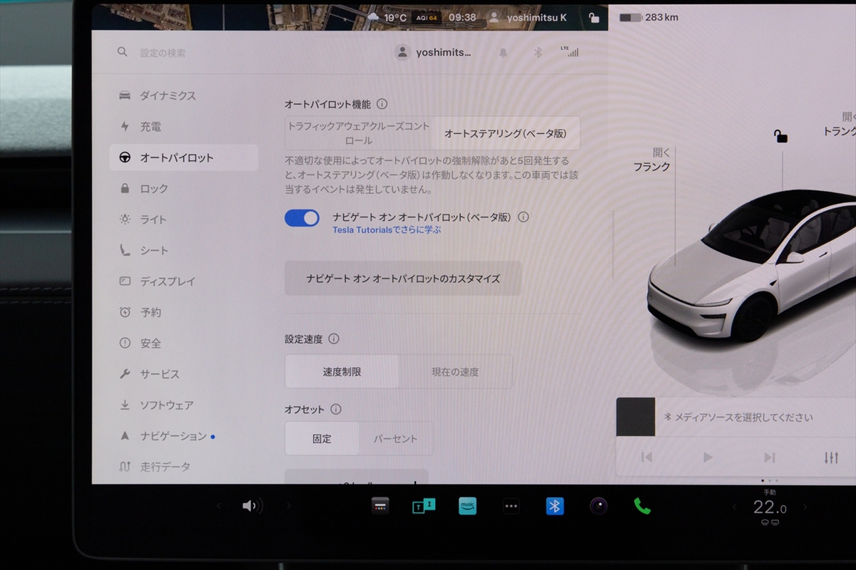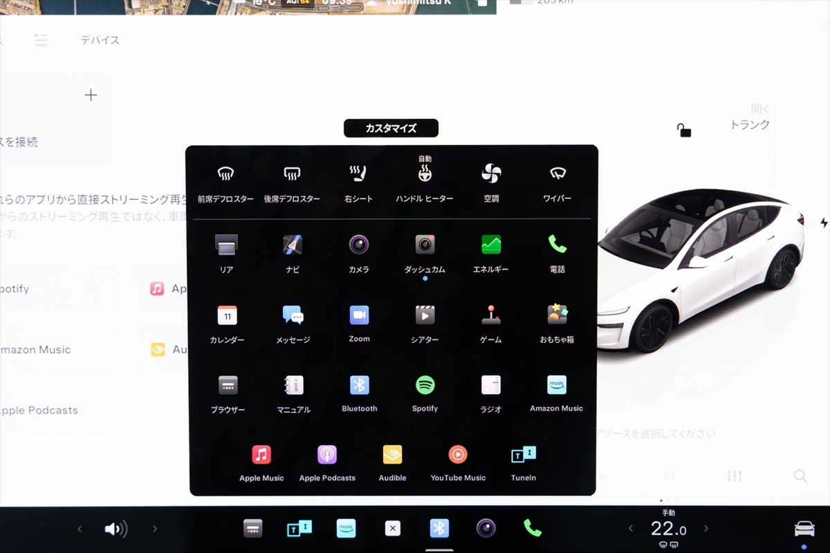 このディスプレイを色々といじってみると「こんなこともできるの!?」がいっぱい。ステアリングの重さや回生量だけでなく、エアコンルーバーの操作までタッチスクリーン操作というから驚きです。
