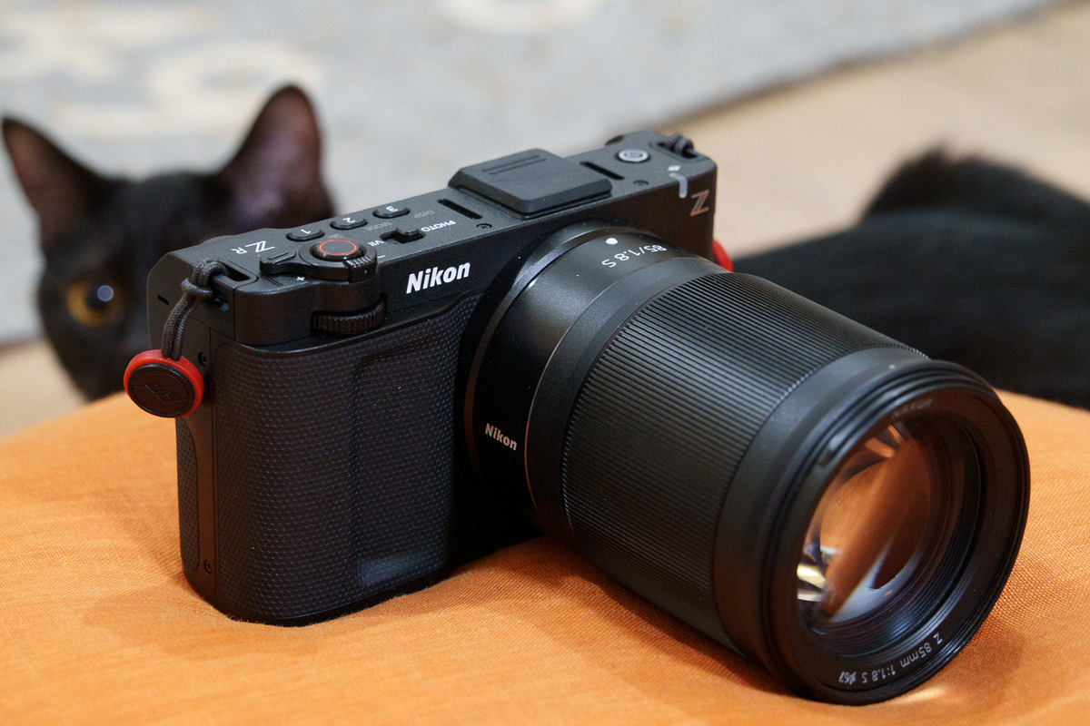 挑戦者はニコンの「ZR」。ガチ寄りの動画カメラなのだけど、中身は最新のZシリーズなので静止画にも強いし、AFは高速で連写も得意なのだ。動画仕様なのでファインダーはないけど、その分背面モニターがでかいので、自在に動き回る猫に合わせたアングルをとりやすいのも猫向き。