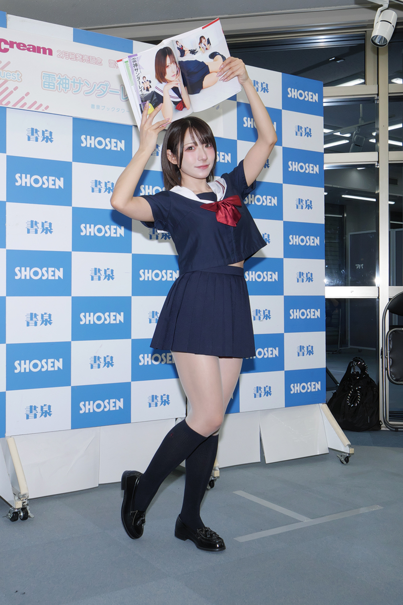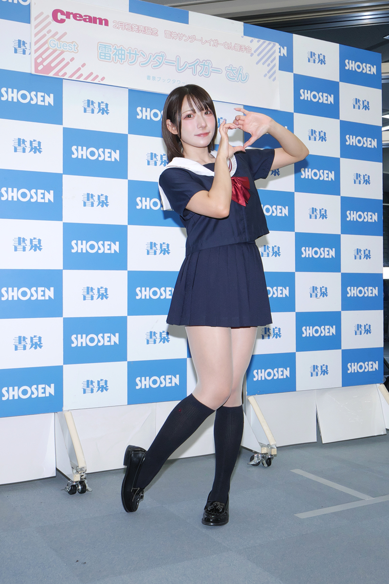アイドルグループ「ニコニコ▽SPIRIT」(略称:二コスピ)の雷神サンダーレイガーさんが、制服美少女誌「Cream 2026年2月号」(発行元:メディアックス、定価:2500円)の発売記念イベントを1月27日、秋葉原の書泉ブックタワーで開催した。