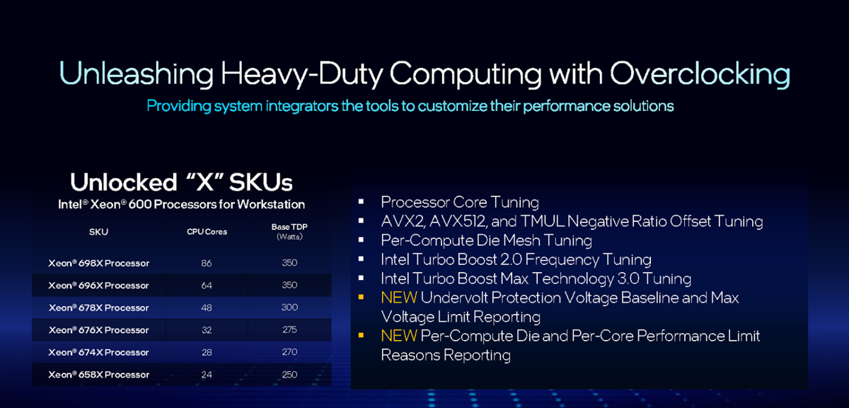 下位のモデルは型番が数字のみなので、「Xeon」を抜いた略記だと意味が通じづらくなりそうです。なお、末尾に「X」が付くモデルはコア倍率がアンロックされており、オーバークロック動作が可能です。