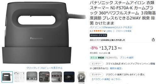 【Amazonで7%オフ】パナソニック 衣類スチーマー「NI-FS70A-K」をチェック!